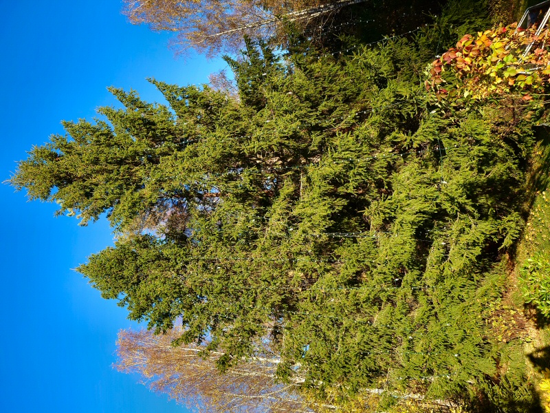 The two large fir trees has got their 2440 lights. They are