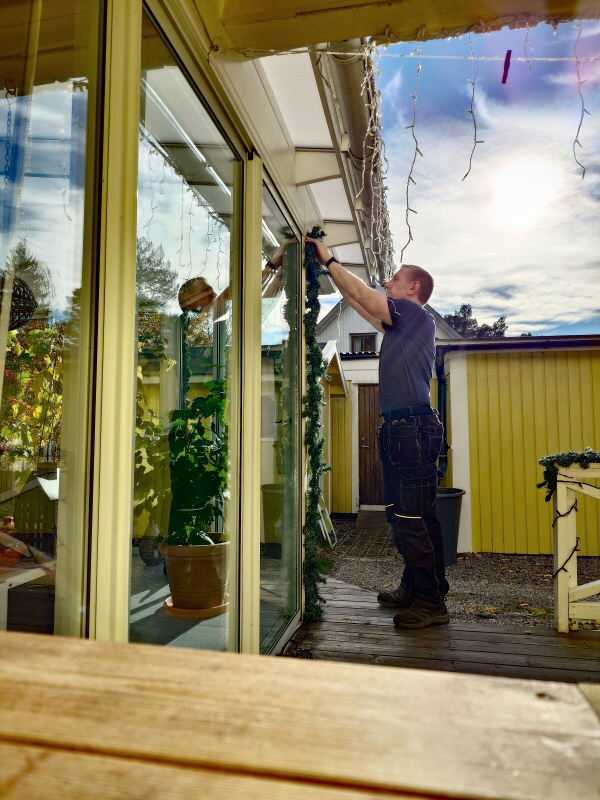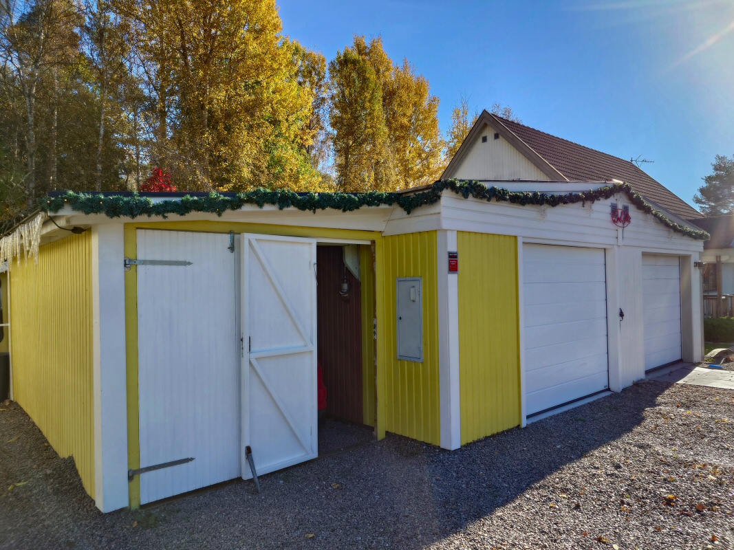 garage has got their garlands and lights.